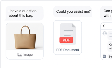 Customers can drop screenshots, receipts, or PDFs directly into chat AI. It reads text, detects images, and extracts order numbers or product codes instantly, turning clunky email attachments into smooth, real‑time problem solving inside the same window.